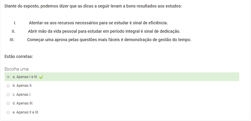 I. Atentar-se aos recursos necessários para se estudar é sinal de eficiência.