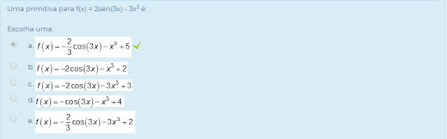 3) Uma primitiva para f(x) = 2sen(3x) - 3x2 é: