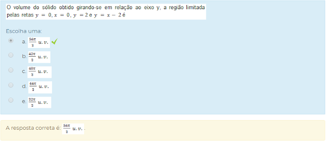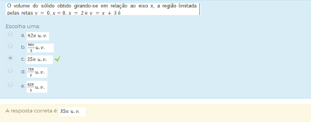 3) O volume do solido obtido girando-se em relação ao eixo x