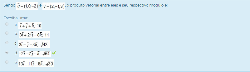 , o produto vetorial entre eles e seu respectivo módulo é:
