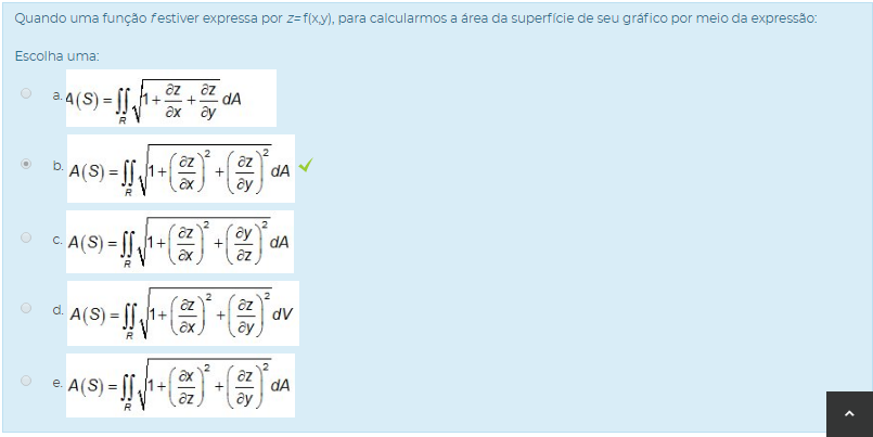 3) Quando uma função f estiver expressa por z= f(x,y), para calcularmos a área da superfície de seu gráfico por meio da expressão: