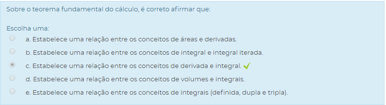 1) Sobre o teorema fundamental do cálculo, é correto afirmar que: