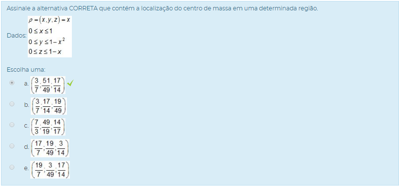 3) Assinale a alternativa CORRETA que contém a localização do centro de massa em uma determinada região.