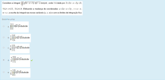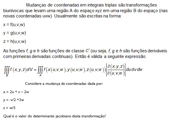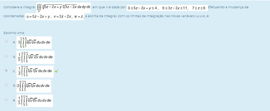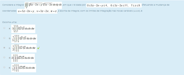 a escrita da integral, com os limites de integração nas novas variáveis (u,v,w), é: