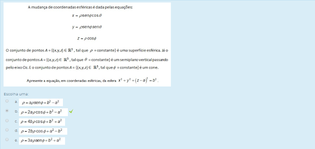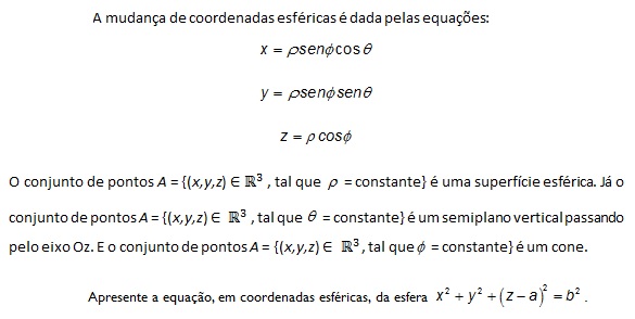 3) Apresenta a equação, em coordenadas esféricas, da esfera x²+y²+(z-1)²=1.