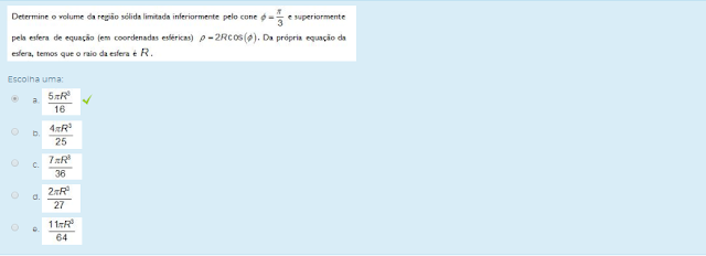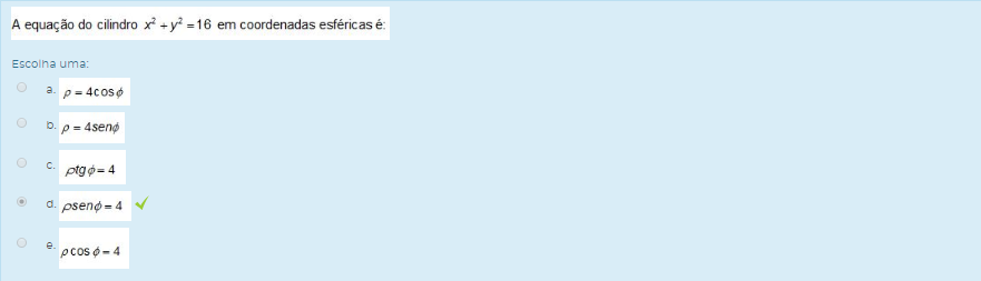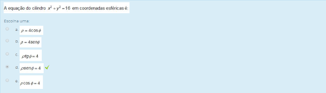 2) A equação do cilindro x²+y²=16 em coordenadas esféricas é: