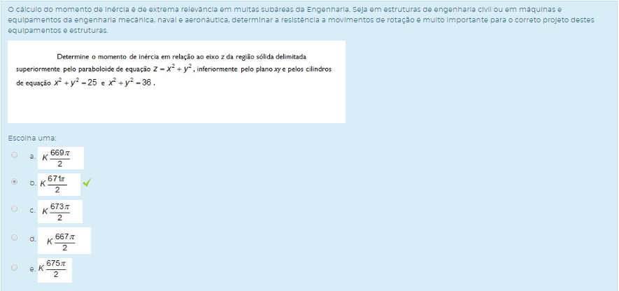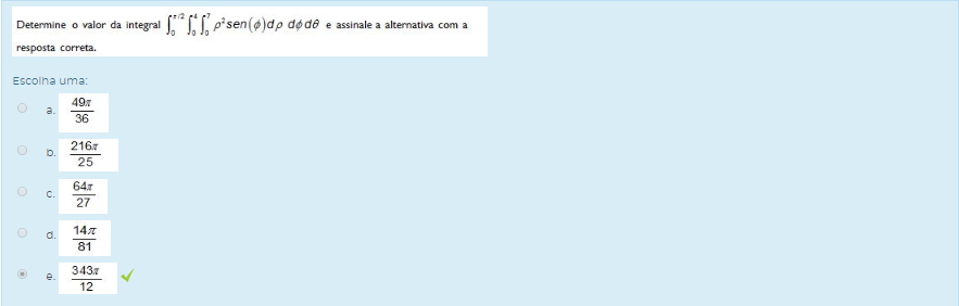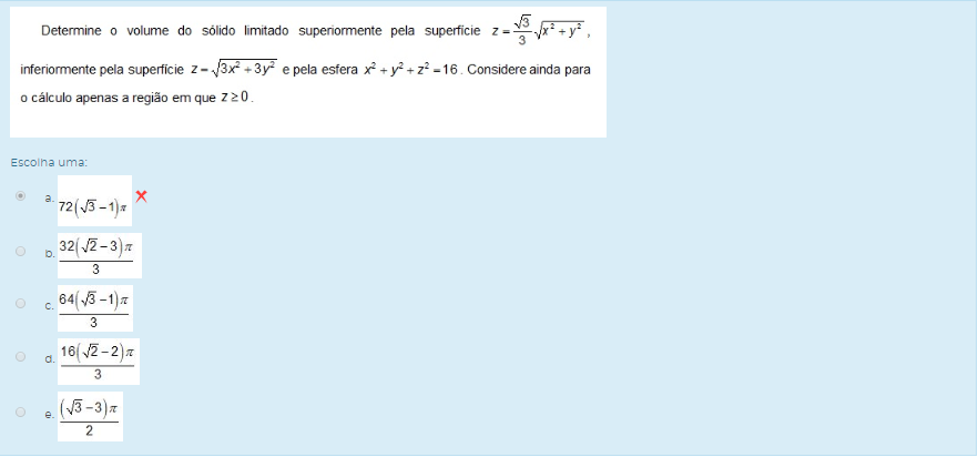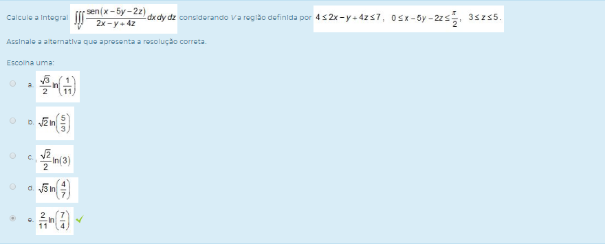 Assinale a alternativa que apresenta a resolução correta.Escolha uma: