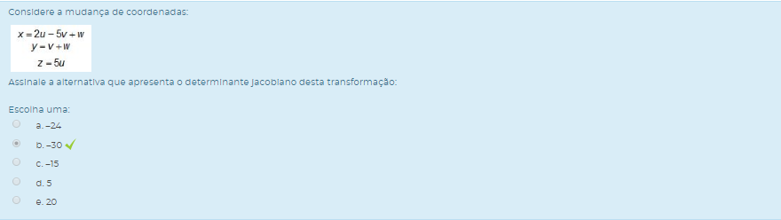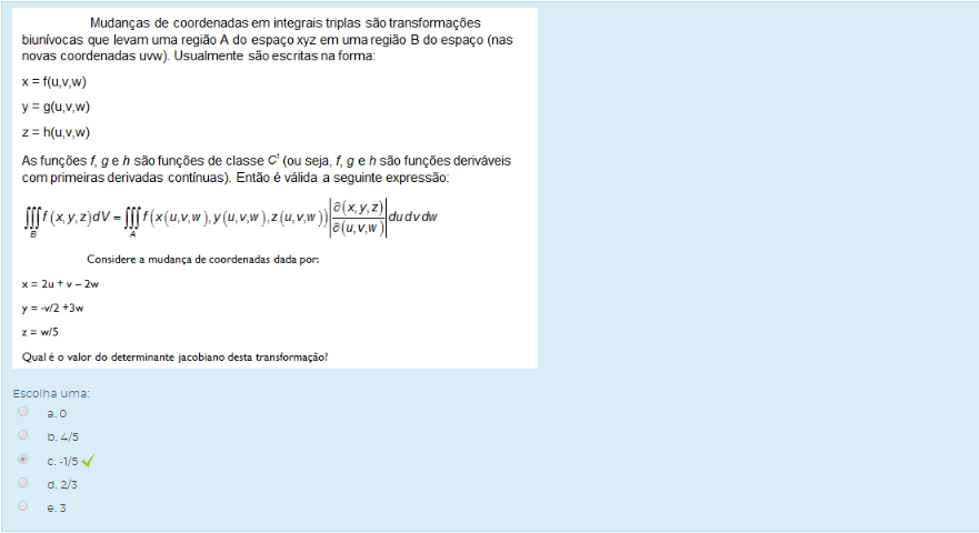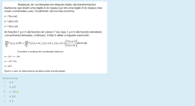 Assinale a alternativa que apresenta o determinante jacobiano desta transformação: