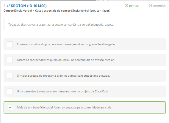 1 Todas as alternativas a seguir apresentam concordância verbal adequada, exceto: