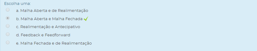 O texto mostra o conceito de controle e ainda, comenta que existem basicamente dois tipos de controle, quais são esses tipos? Assinale a alternativa que apresenta os dois tipos de controle.