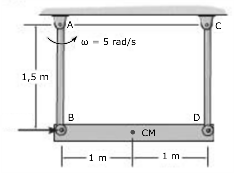 Determine a tração T desenvolvida nas barras nesse instante e selecione a alternativa que apresente a resposta correta.