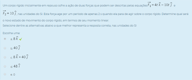 Selecione dentre as alternativas abaixo a que melhor representa a resposta correta, nas unidades do SI