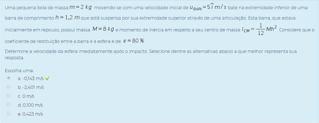 Determine a velocidade da esfera imediatamente após o impacto. Selecione dentre as alternativas abaixo a que melhor representa sua resposta.