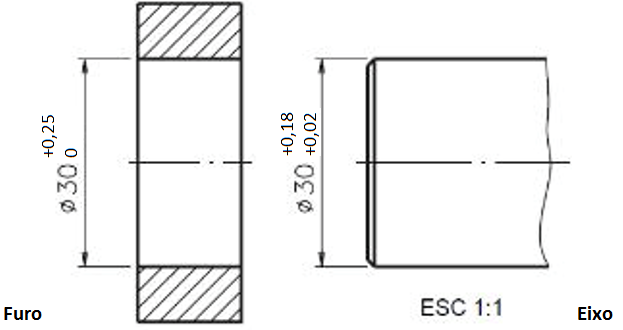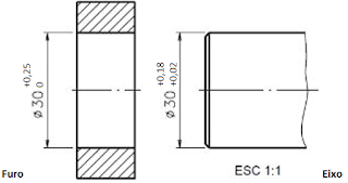 Analise a figura abaixo, que ilustra o desenho técnico de um eixo e de um furo que atuam em conjunto por meio de ajuste