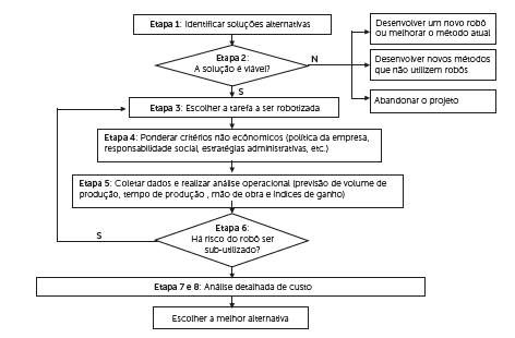 As oito principais etapas que estão envoltas para a seleção de robôs para a realização de um projeto de automação, basicamente são estas: