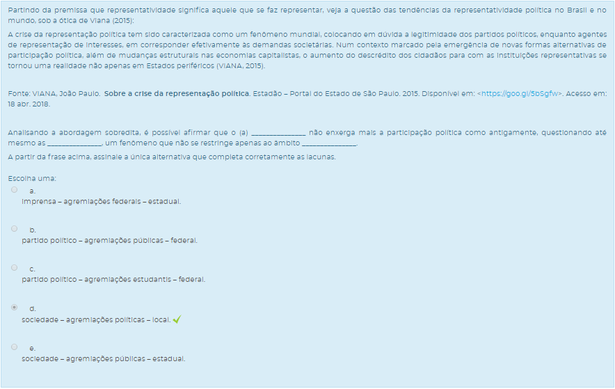 Fonte: VIANA, João Paulo. Sobre a crise da representação política. Estadão – Portal do Estado de São Paulo. 2015. Disponível em: <https://goo.gl/5bSgfw>. Acesso em: 18 abr. 2018.