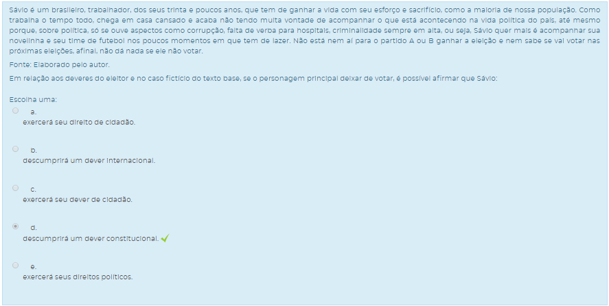 Em relação aos deveres do eleitor e no caso fictício do texto base, se o personagem principal deixar de votar, é possível afirmar que Sávio: