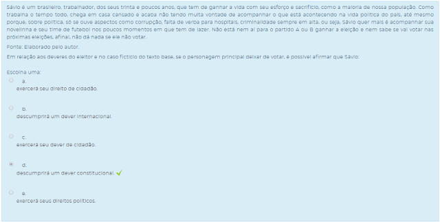 1) Sávio é um brasileiro, trabalhador, dos seus trinta e poucos anos, que tem de ganhar a vida com seu esforço e sacrifício, como a maioria de nossa população. Como trabalha o tempo todo, chega em casa cansado e acaba não tendo muita vontade de acompanhar o que está acontecendo na vida política do país, até mesmo porque, sobre política, só se ouve aspectos como corrupção, falta de verba para hospitais, criminalidade sempre em alta, ou seja, Sávio quer mais é acompanhar sua novelinha e seu time de futebol nos poucos momentos em que tem de lazer. Não está nem aí para o partido A ou B ganhar a eleição e nem sabe se vai votar nas próximas eleições, afinal, não dá nada se ele não votar.