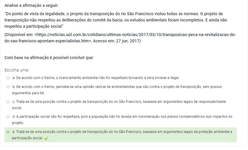 (Disponível em: <https://noticias.uol.com.br/cotidiano/ultimas-noticias/2017/03/10/transposicao-peca-na-revitalizacao-do-do-sao-francisco-apontam-especialistas.htm>. Acesso em: 27 jun. 2017)