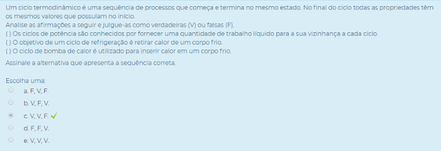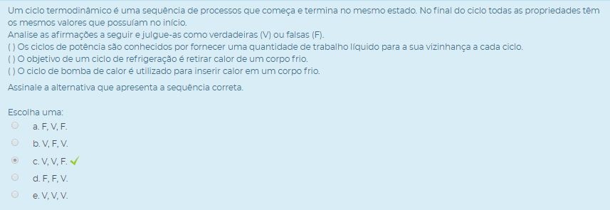 ( ) O ciclo de bomba de calor é utilizado para inserir calor em um corpo frio.