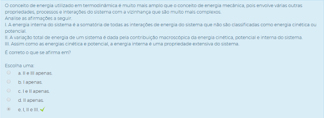 I. A energia interna do sistema é a somatória de todas as interações de energia do sistema que não são classificadas como energia cinética ou potencial.