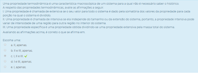 II. Uma propriedade é chamada de intensiva se ela independe do tamanho ou da extensão do sistema, portanto, a propriedade intensiva pode variar de intensidade de uma região para outra região no interior do sistema.
