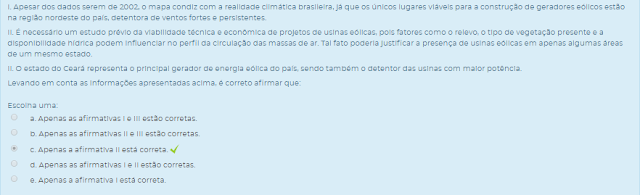 II. ( ) Para conhecermos o potencial real de aproveitamento dos ventos para a geração de eletricidade, basta consultarmos um mapa global de circulação atmosférica.