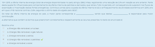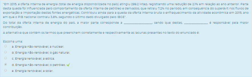 Do total da oferta interna de energia do país, a maior parte corresponde a ___________________, sendo que destas, ________________ é responsável pela maior contribuição.
