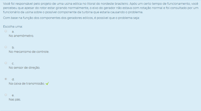 Com base na função dos componentes dos geradores eólicos, é possível que o problema seja: