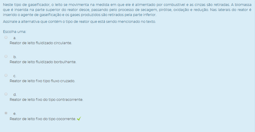 Assinale a alternativa que contém o tipo de gaseificador descrito no texto.