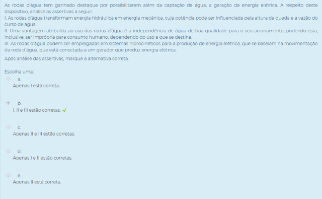 I. Carneiros hidráulicos e rodas d’água apresentam vantagens competitivas com relação a outros dispositivos da mesma natureza por consumirem pouca energia e combustível em seu funcionamento.