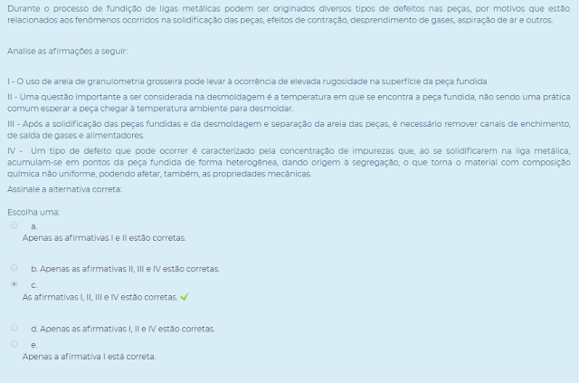 (___) A presença de gases dissolvidos no metal líquido impede a formação de vazios na peça fundida.