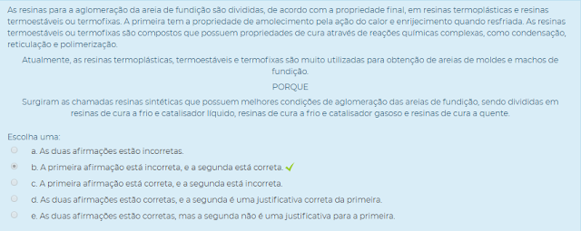 III. Os aglomerantes das areias de fundição podem ser orgânicos, inorgânicos ou sintéticos, como as resinas.