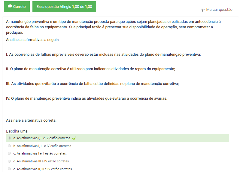 IV. O plano de manutenção preventiva indica as atividades que evitarão a ocorrência de avarias.