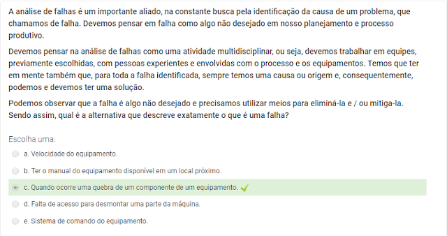 Gestão da Manutenção /UNIDADE DE ENSINO 4 /U4 - Avaliação da Unidade
