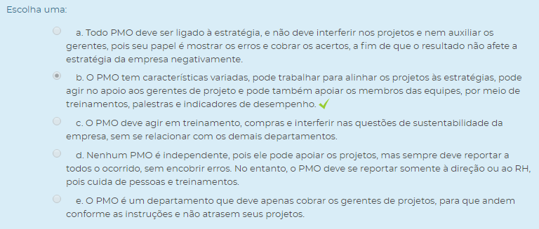 3) As funções do PMO podem ser confundidas facilmente com a de outros departamentos das empresas, por isso, ele é composto por profissionais de projetos, que devem fazer atividades específicas.