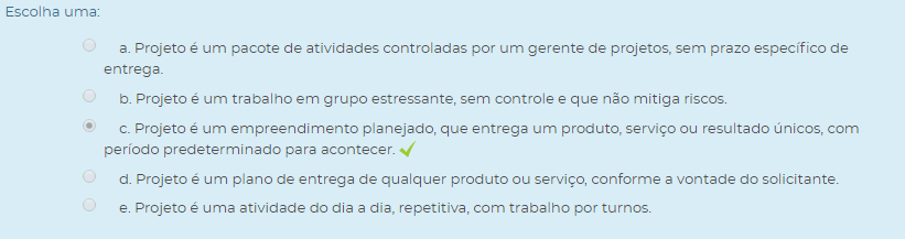 2) Um projeto possui características e objetivos determinados. Qual das características a seguir está relacionada com um projeto?