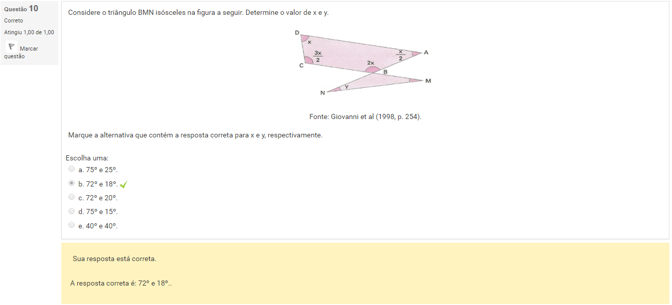10 Considere o triângulo BMN isósceles na figura a seguir. Determine o valor de x e y.