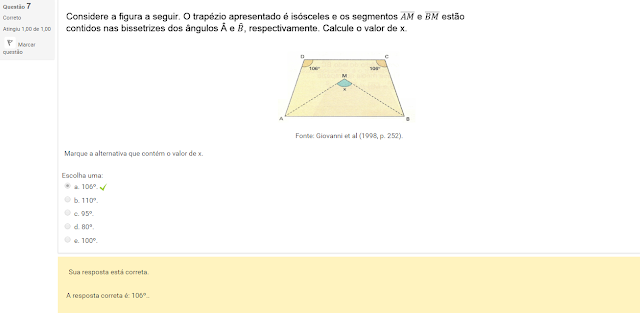 7 Considere a figura a seguir. O trapézio apresentado é isósceles e os segmentos e estão contidos nas bissetrizes dos ângulos  e , respectivamente. Calcule
