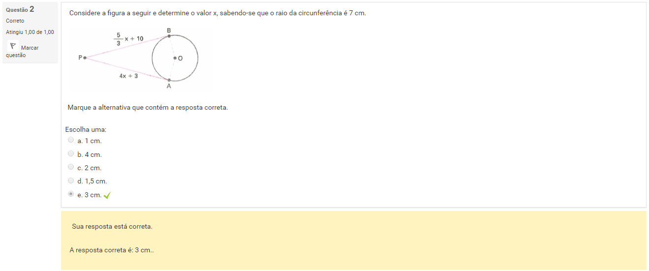 2 Considere a figura a seguir e determine o valor x, sabendo-se que o raio da circunferência é 7 cm.