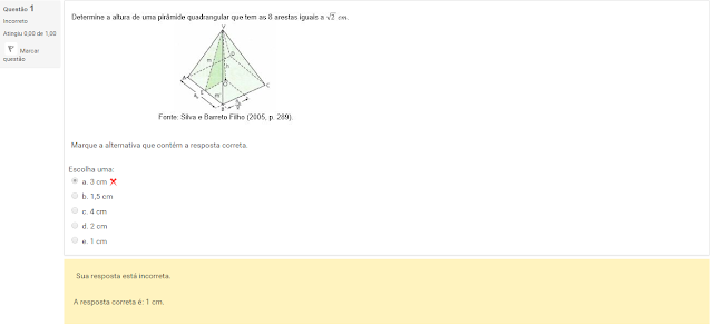 1 Qual é altura de uma pirâmide quadrangular que tem as oito arestas iguais a raiz de 2?