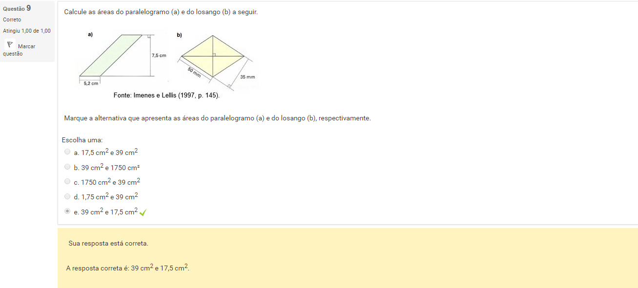 9 Calcule as áreas do paralelogramo (a) e do losango (b) a seguir.