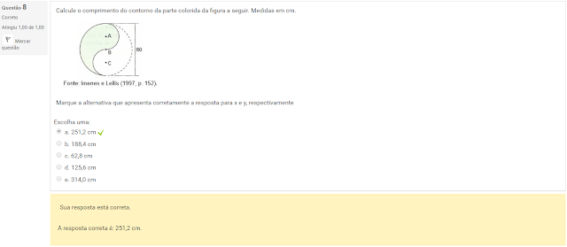 8 Calcule o comprimento do contorno da parte colorida da figura a seguir. Medidas em cm.
