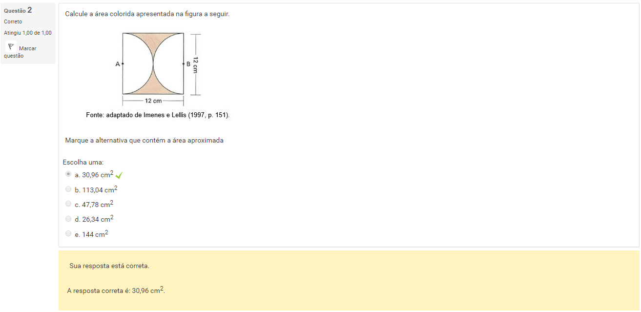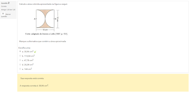2 Calcule a área colorida apresentada na figura a seguir.