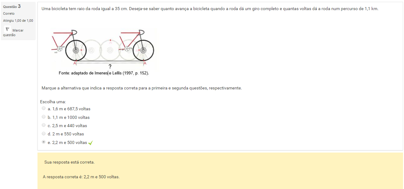 3 Uma bicicleta tem raio da roda igual a 35 cm. Deseja-se saber quanto avança a bicicleta quando a roda dá um giro completo e quantas voltas dá a roda num percurso de 1,1 km.