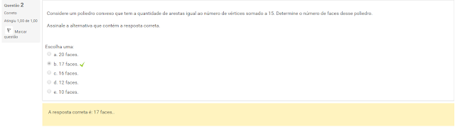 2 Considere um poliedro convexo que tem a quantidade de arestas igual ao número de vértices somado a 15. Determine o número de faces desse poliedro.