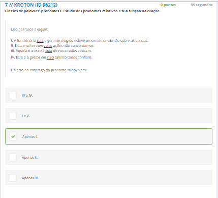 I. A funcionária cuja a gerente elogiou esteve presente na reunião sobre as vendas.