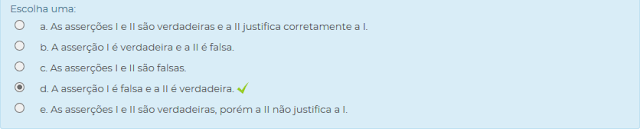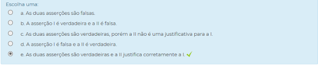 e. As duas asserções são verdadeiras e a II justifica corretamente a I.