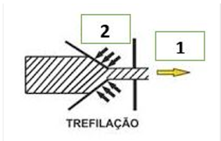 V. O fio-máquina é forçando a passar pelo furo da matriz gerando sua redução e automaticamente o produto acabado.