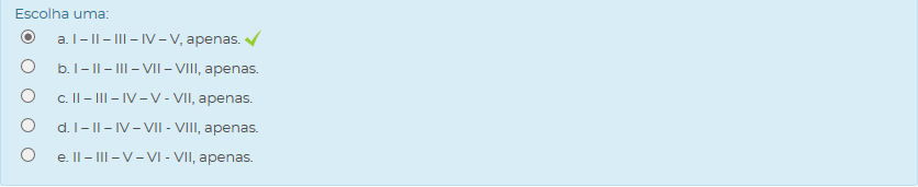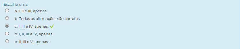 d. Apenas as afirmações II, III, IV e V são corretas.